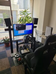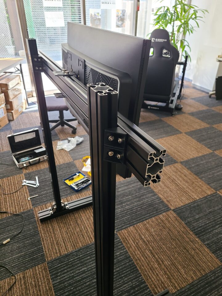 先々モーションシミュレーターへのアップグレードを視野に入れて、コックピットにつけるモニターマウントではなく、自立するモニタースタンドを選択しました。