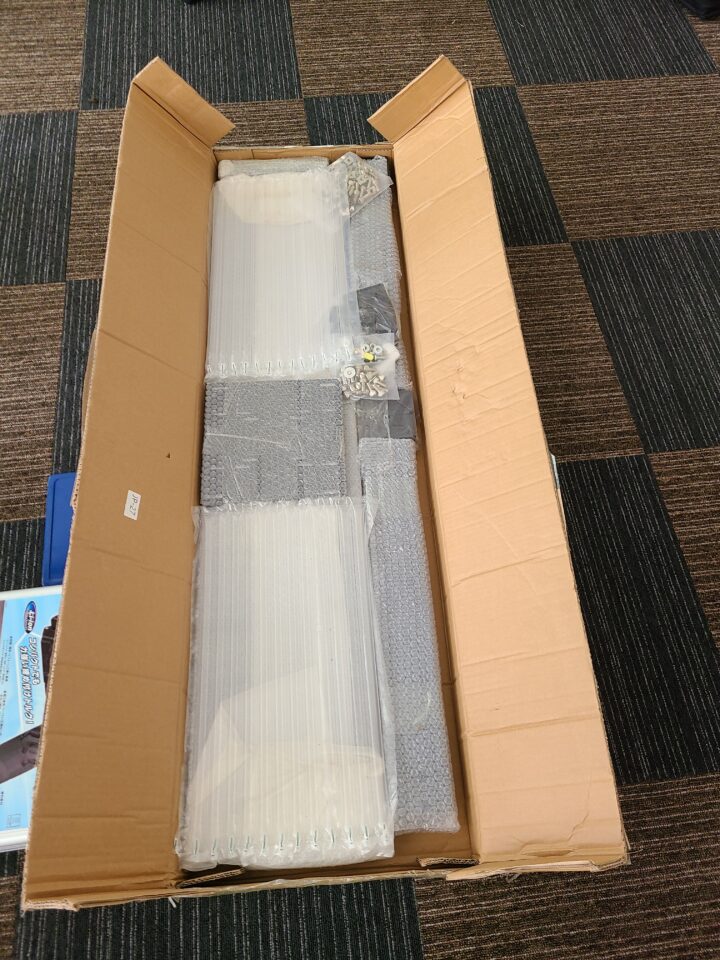箱の中身はこんな感じ。アルミフレームは綺麗にカットしてありバリやキリコはありません。