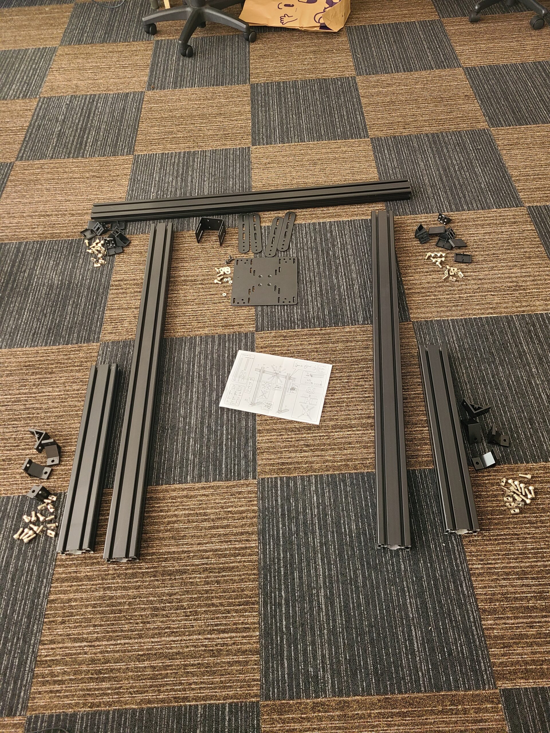 いつものように、ネジ、ブラケットの員数確認と組み立て方の予習を兼ねて全部品を並べます。