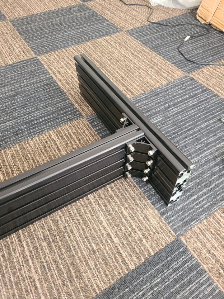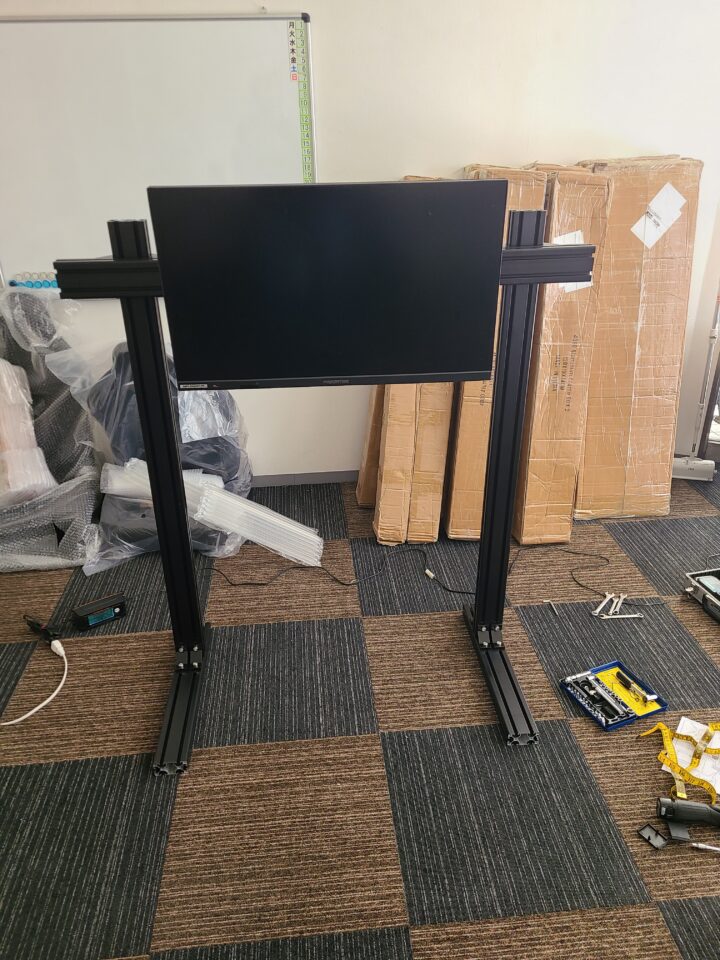 ショールーム(と言うほどでもないですが、、)のコックピット用にシングルモニタースタンドを組んでみました。