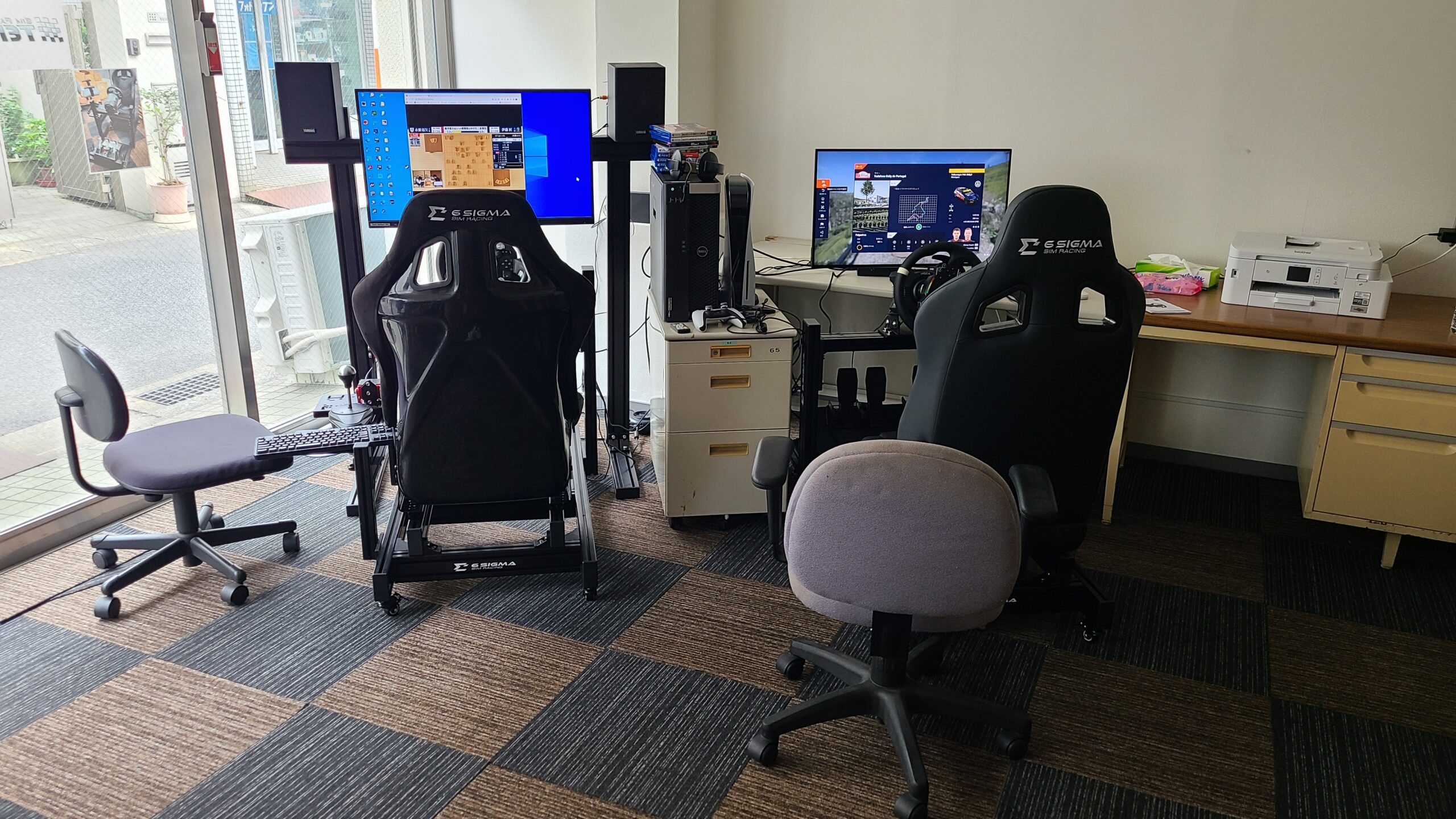 コンセプトは、庶民の駄菓子屋的レースシム場です。よくあるレースシムカフェのようなオシャレなものではありません。まだ、事務所と倉庫兼用ですので、リグの隣には在庫品の段ボールがあります。よって、デートの場にはふさわしくないかもです。