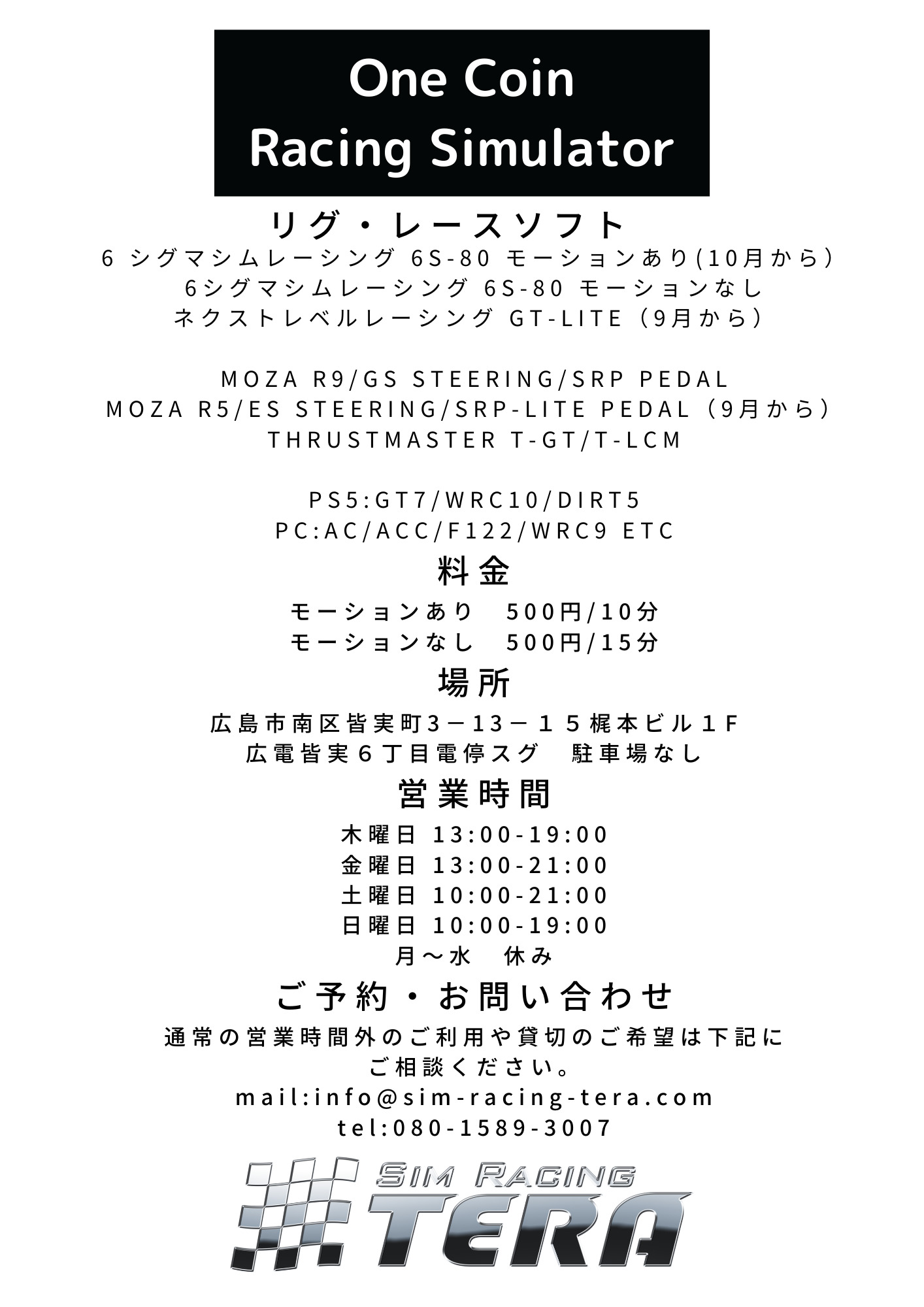 お察しの通りワンコイン(100円ではありません、500円です)でシムレーシングを楽しんで頂ける場所を開きます。以前からやりたいと思っていたのですが、何分まだ会社員の身でずっと店番をする訳にもいかず、タイミングを見計らっていました。